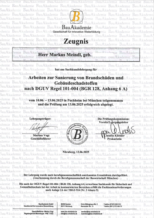 Zertifikat Sachverständiger Bautentrocknungsgewerbe